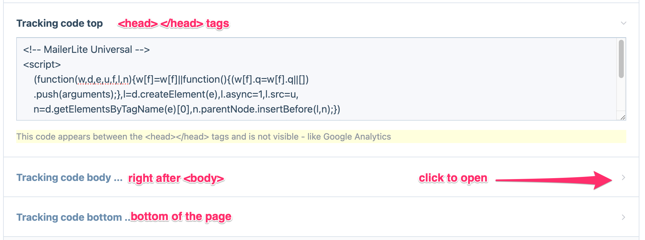 It's common to need to tuck into your website templates various third party code for: analytics, maillists, PayPal, social media, reservation engines, forms – the list is endless, but the "buckets" where these need to go seldom change: