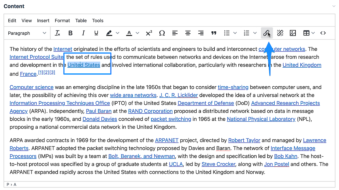 Next, check any links. You want full links to external websites that are not filtered through a Google Docs scanner. To check your links, highlight any link in your copy and click the link icon: