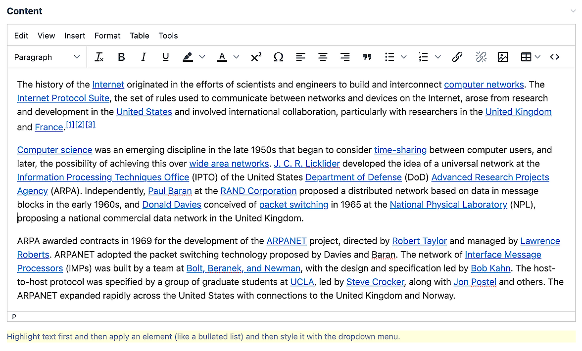 It's common to work on website copy in a word processor, MS Word, Google Docs, etc. While you can just start typing in any text box, you're more likely to copy from one source and paste into the content area in your page. The text editor will automatically reduce some of the formatting from the source document – but it may not get all of it.