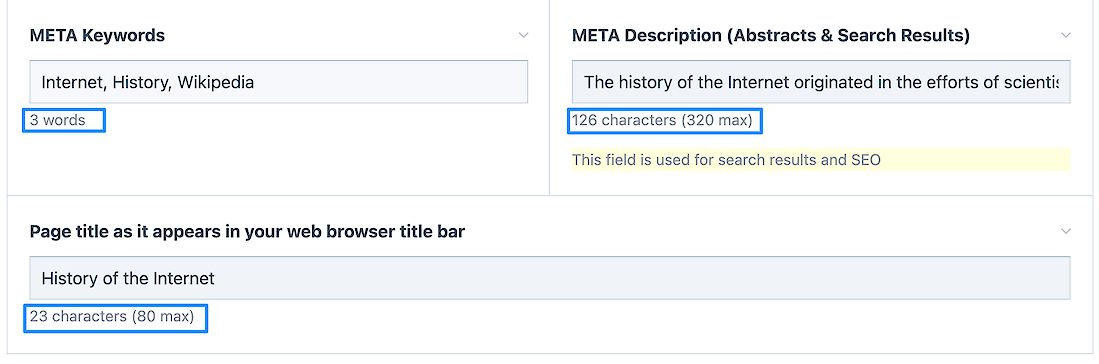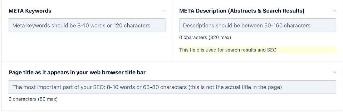 However, every page has a location to easily improve your SEO -- at the bottom -- and each one has tooltips and counters built in.