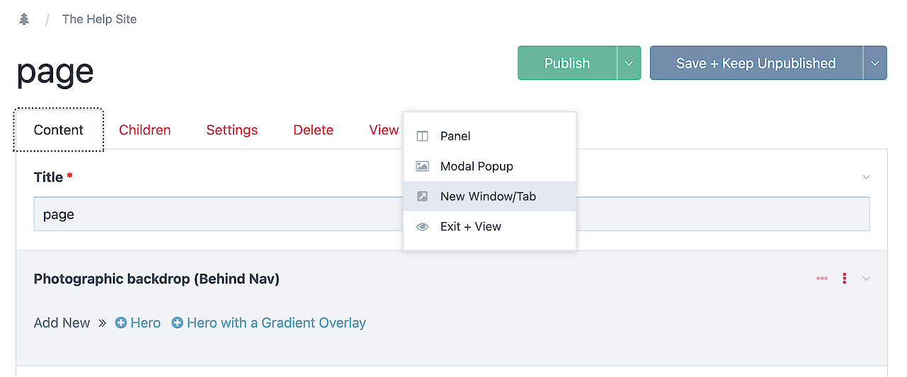 As you work and save, you may want to see what your page looks like. There easiest way to to choose the View tab and select any of the options. I usually just pop open a new tab.