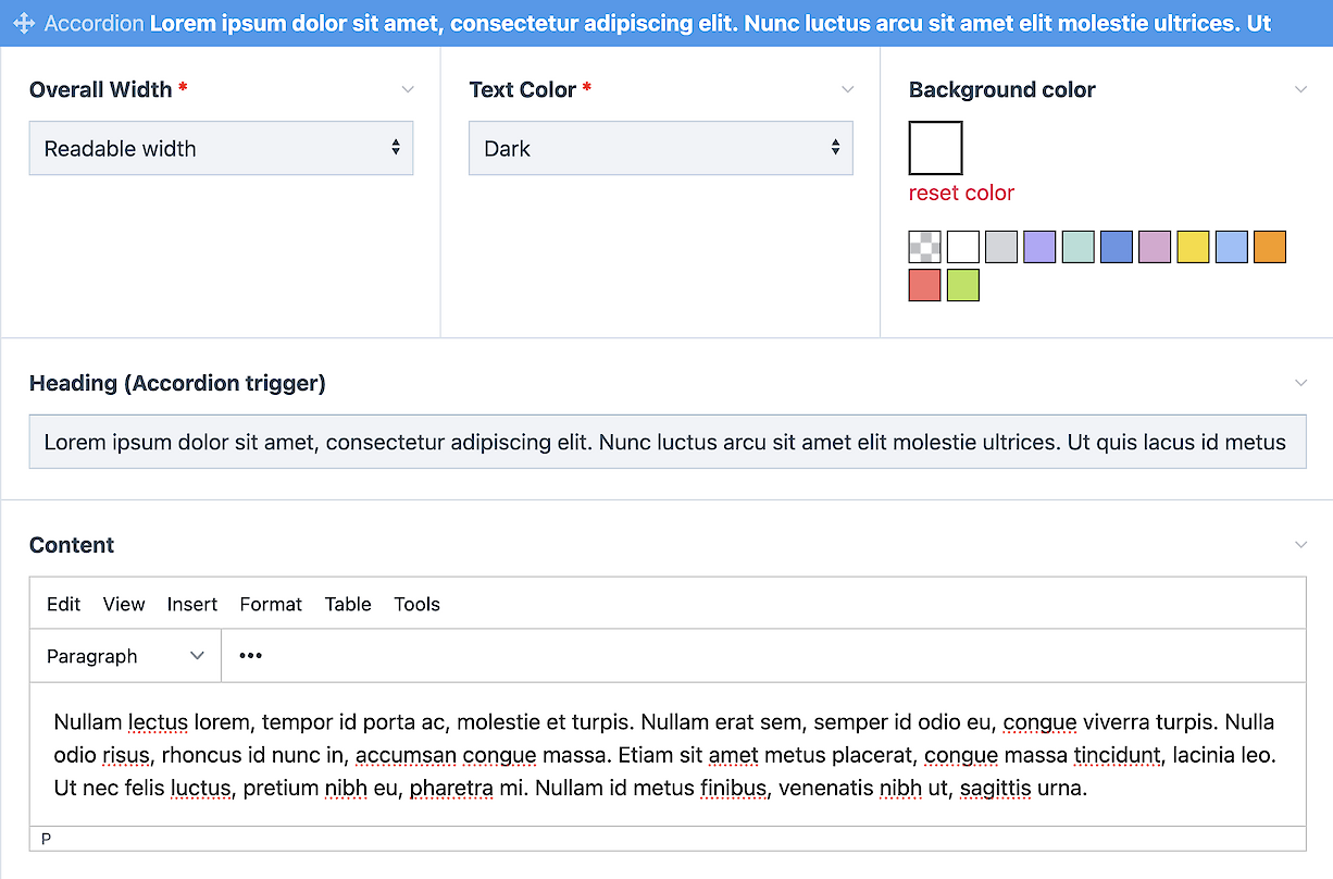 Accordions are an easy way to organize things like an FAQ; short questions and short answers.